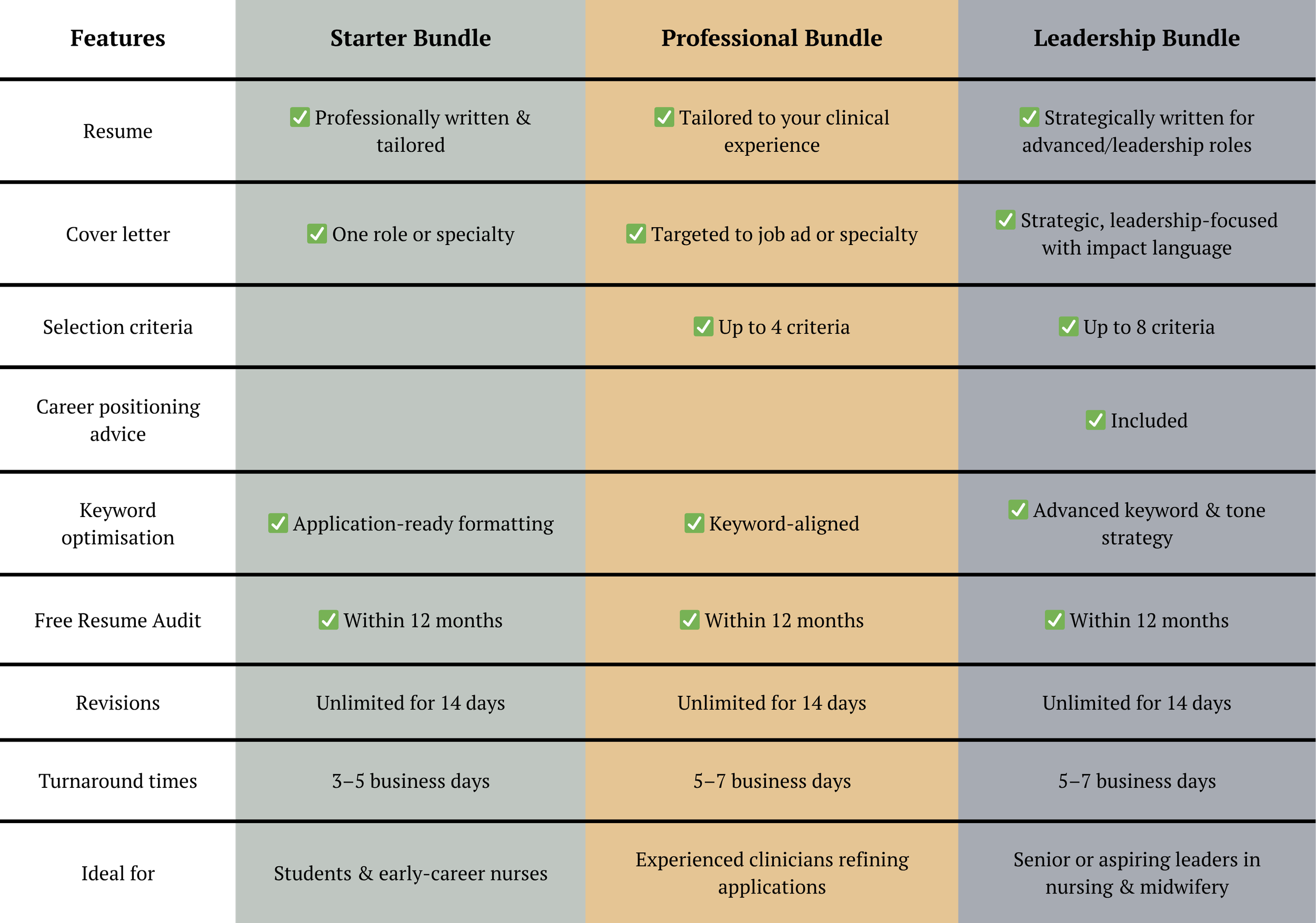 Our Resume Bundles combine your essential career documents into one seamless package—perfect for nurses and midwives who want to apply with confidence and consistency.